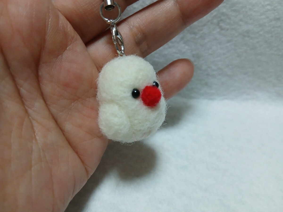 - 羊毛フェルト ハンドメイド 小鳥 コロコロ野鳥 文鳥 白文鳥ちゃん ストラップ
