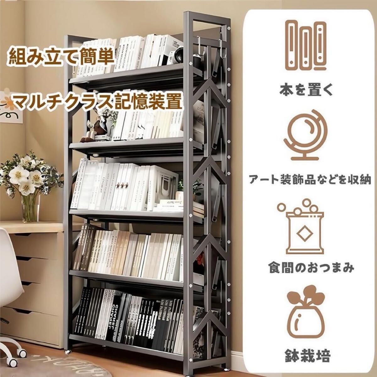 - 【組み立て簡単】本棚 ステンレスラック 書類棚 オープンシェルフ オフィス収納 家具 5段 大容量 A4サイズ対応 可動棚 I16180