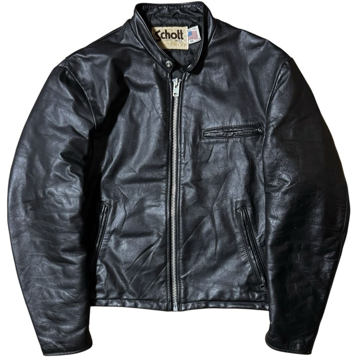 > 雰囲気抜群 ビッグサイズ44 Schott 80s USA製 542 立ち襟 本革 レザー シングルライダースジャケット キルティングライナー ブラック