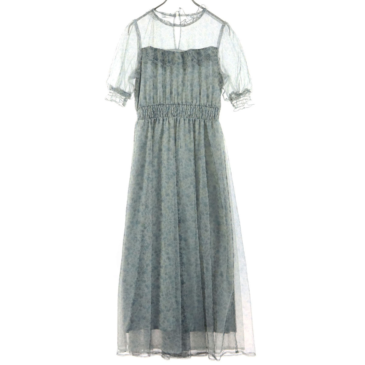 > 美品 titty&co ティティーアンドコー 小花柄 半袖 パフスリーブ シフォン ロングワンピース M グレー レディース