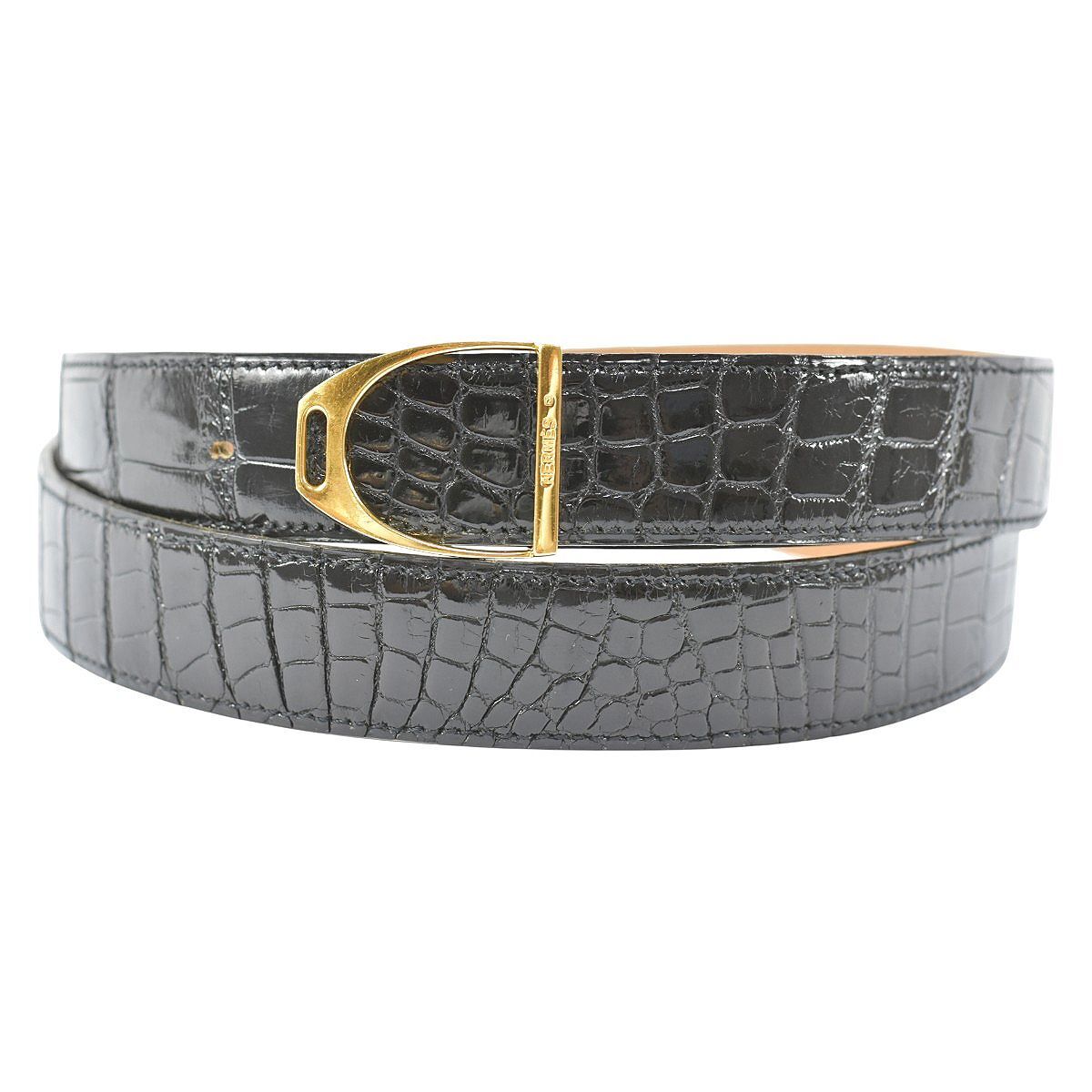 - エルメス 豪華 最上級 クロコダイル ポロサス エトリエ メンズ ベルト ゴールドバックル 黒 〇T刻印 ♯110 HERMES