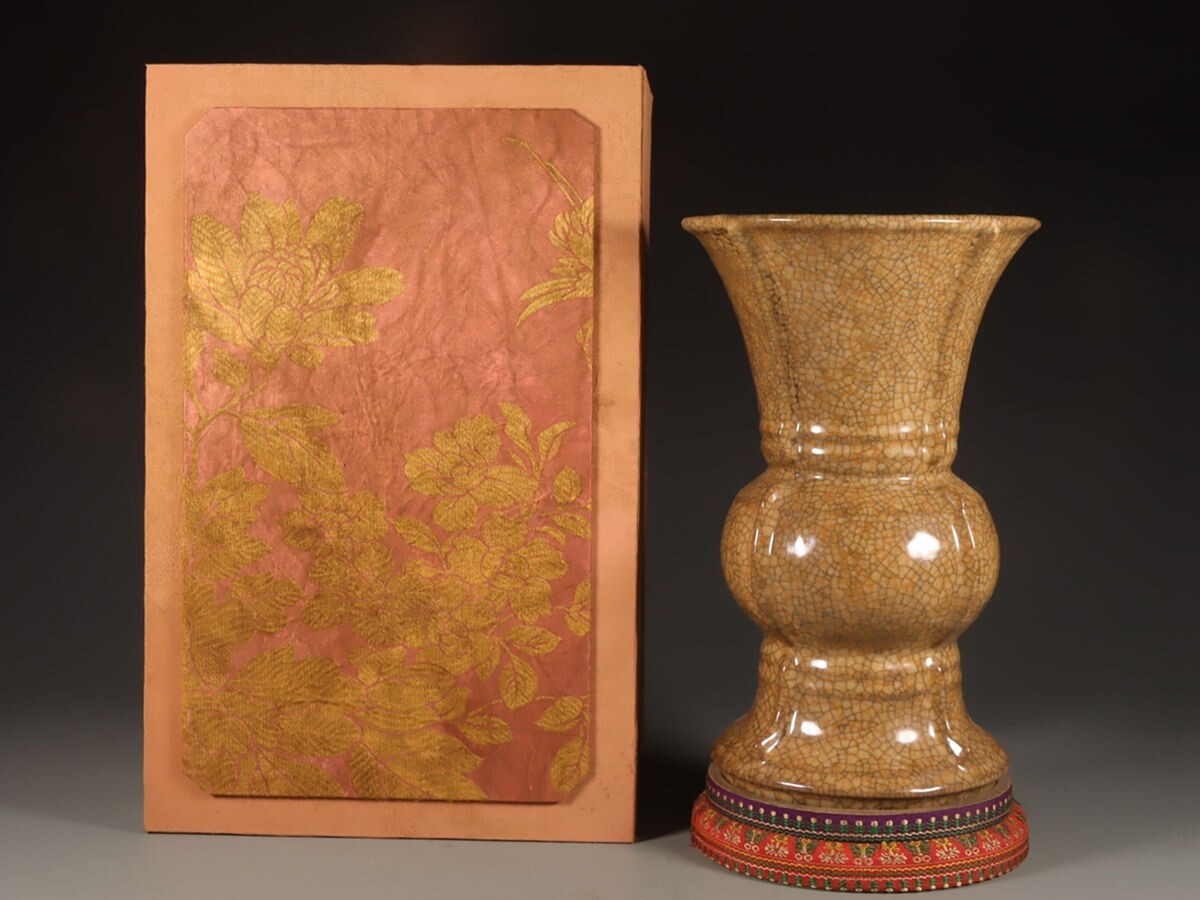 - 宋代 哥窯 陶磁器 米黄釉 花觚【仁】染付 置物擺件 中国古賞物 古美術 蔵出
