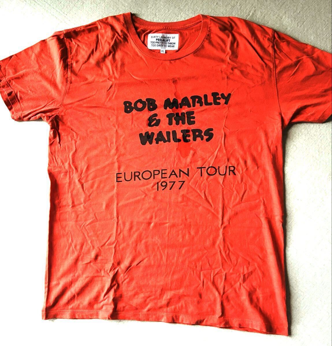 > PEEL&LIFT/BOB MARLEY EUROPEAN TOUR 1977/ダメージ加工 よだれプリントTシャツ/サイズXL