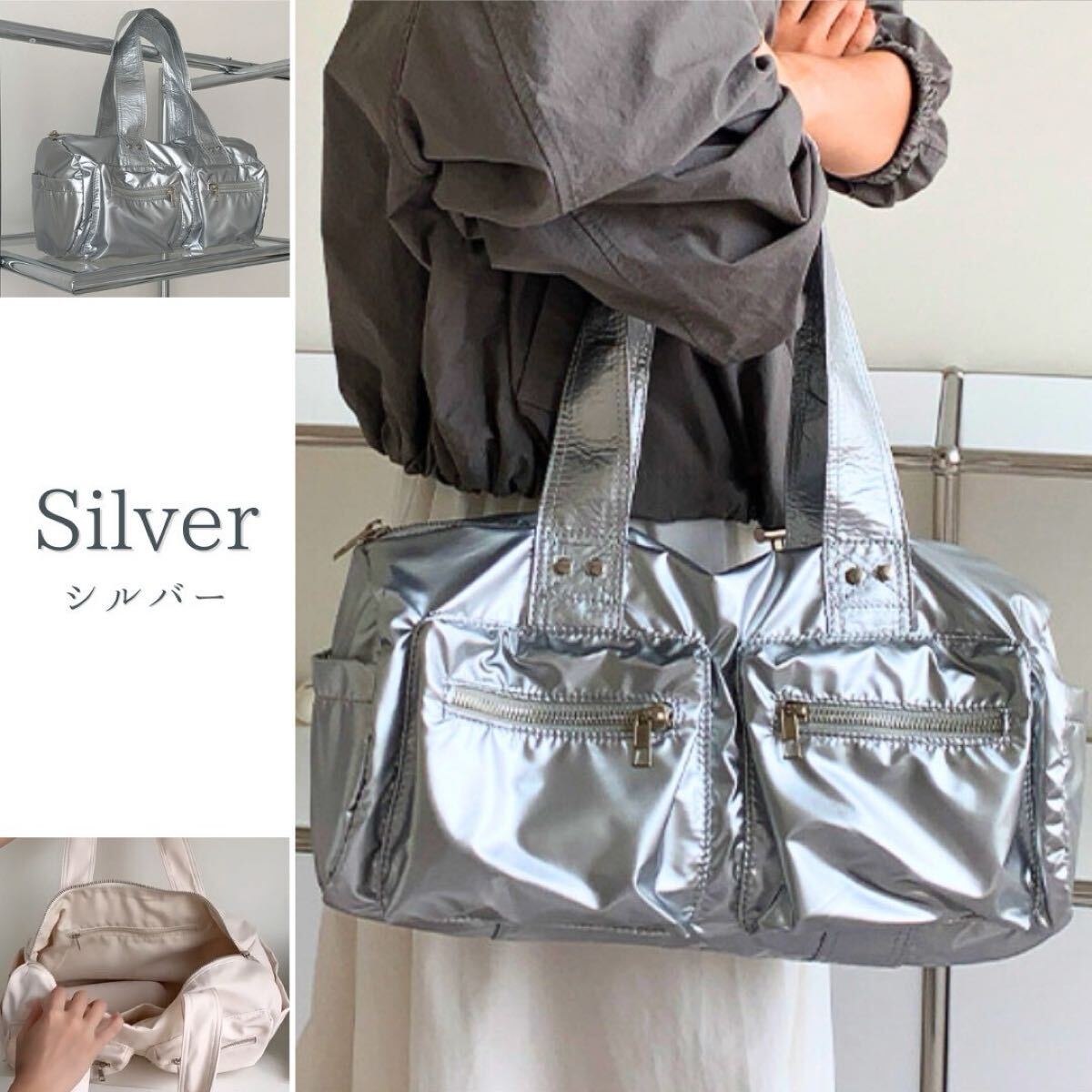 - 新品!シルバー トートバッグ 大容量 多収納 ハンドバッグ