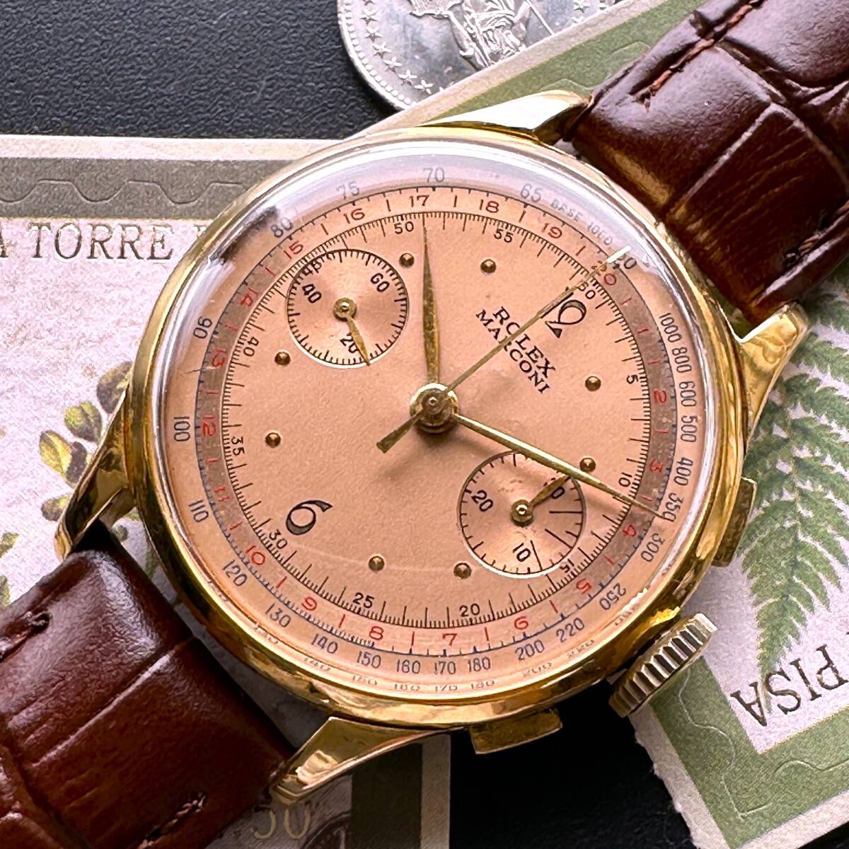 - 即決【ロレックス マルコーニ クロノグラフ】ゴールドプレート ROLEX MARCONI アンティーク時計 ビンテージ時計 メンズ腕時計 手巻き AD39