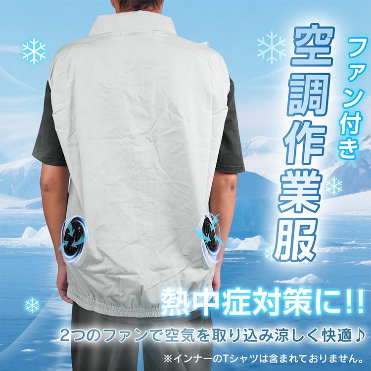- サイズ:2XL ノースリーブ空調作業服 熱中症対策 夏用 ファン付き 空調ウェア 作業服 作業着 撥水 風量調節