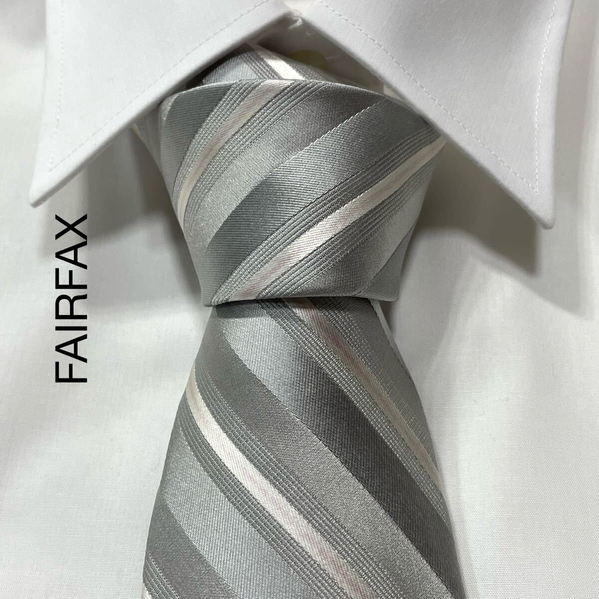 - FAIRFAX フェアファクス レジメンタル ストライプ ジャガード シルク ネクタイ 日本製 グレー TG2888