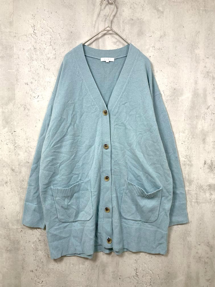 - ゆうパケットOK PLST プラステ ウール 長袖 ロング Vネック カーディガン sizeM/水色 ■■