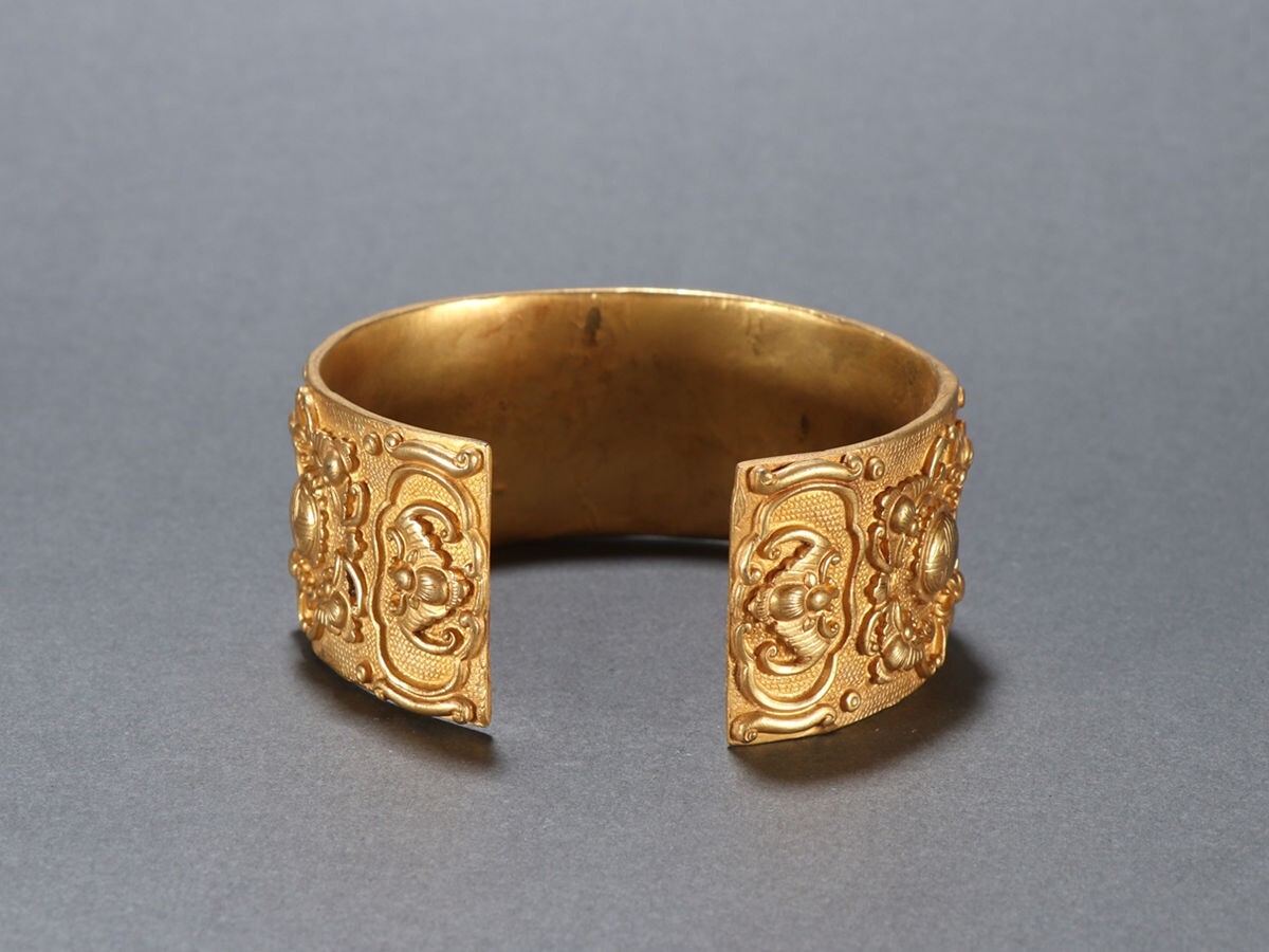 - 清代 古銅鏨刻彫 塗金人物故事 腕輪【仁】古銅器 置物擺件 古賞物 古美術 蔵出