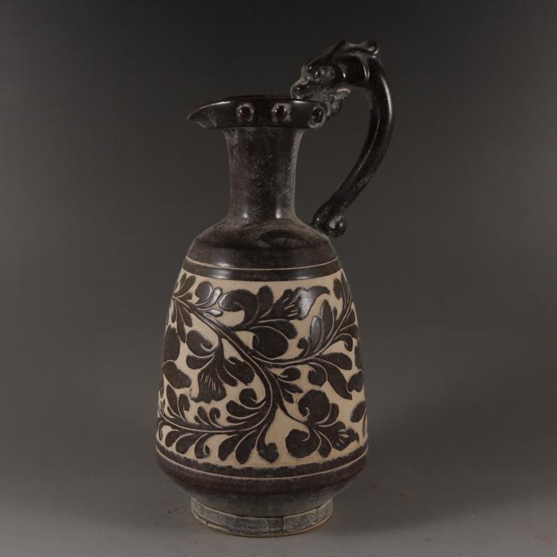 - 景徳鎮 龍頭壺 手作り 彫刻 黒釉 磁器 宋磁州窯 観賞 磁器 置物 装飾 中国美術品 工芸品 収蔵 コレクション zh352