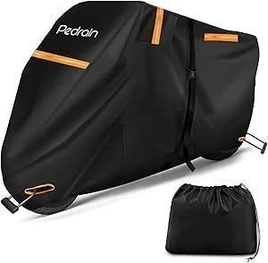 - Pedrain バイクカバー XL 厚手 22x10x12.5cm ブラック 防風ベルト付き 盗難防止ロック 防水防雨防雪防埃 耐久性 300D厚手の生地
