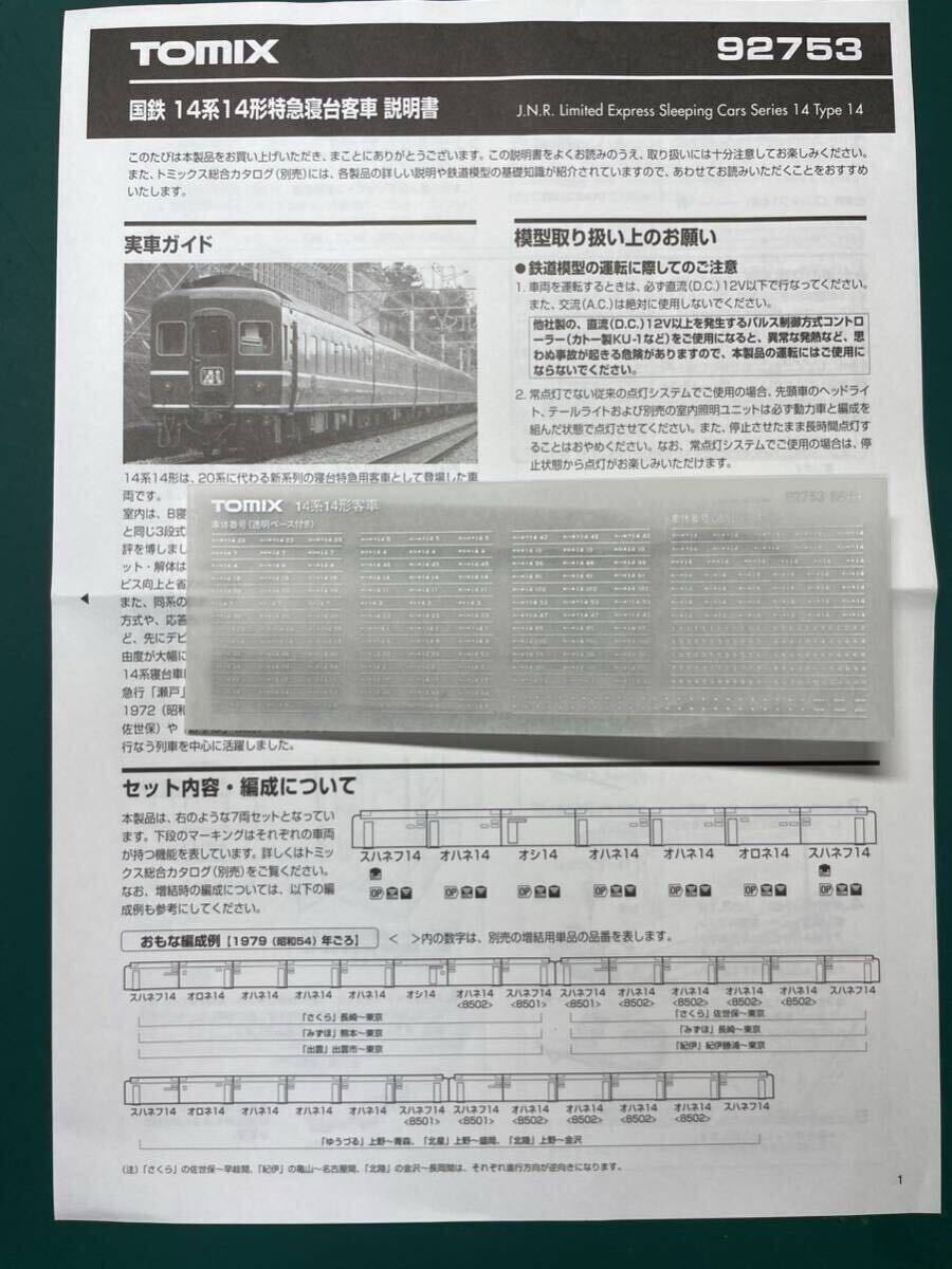 - Tomix トミックス 92753 14系 14形 【車番インレタバラ/区画毎】#EF65#1000番台#24系#25形#カニ24#EF66#15形#EF58#KATO#20系#DD51#ED76