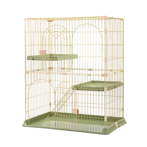- おしゃれ 猫 ケージ キャットケージ 2段 猫ゲージ おしゃれ キャットハウス ネコ ハウス 多段 多頭飼いペットケージ【グリーン】【M】