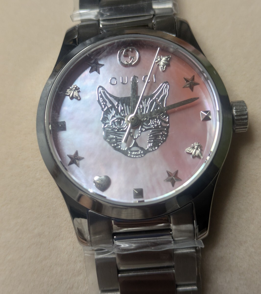 - 新品未使用 グッチ GUCCI Gタイムレス レディース 腕時計 猫 シェル マザーオブパール YA1265013 キャット ピンク