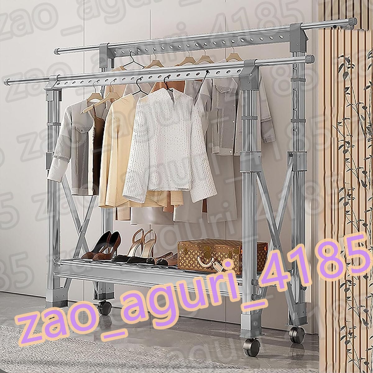 - 物干しラック ハンガーラック 伸縮式多機能ハンガーラック キャスター付き 組み立て簡単 高さ調整120-145cm 幅120cm~220cm