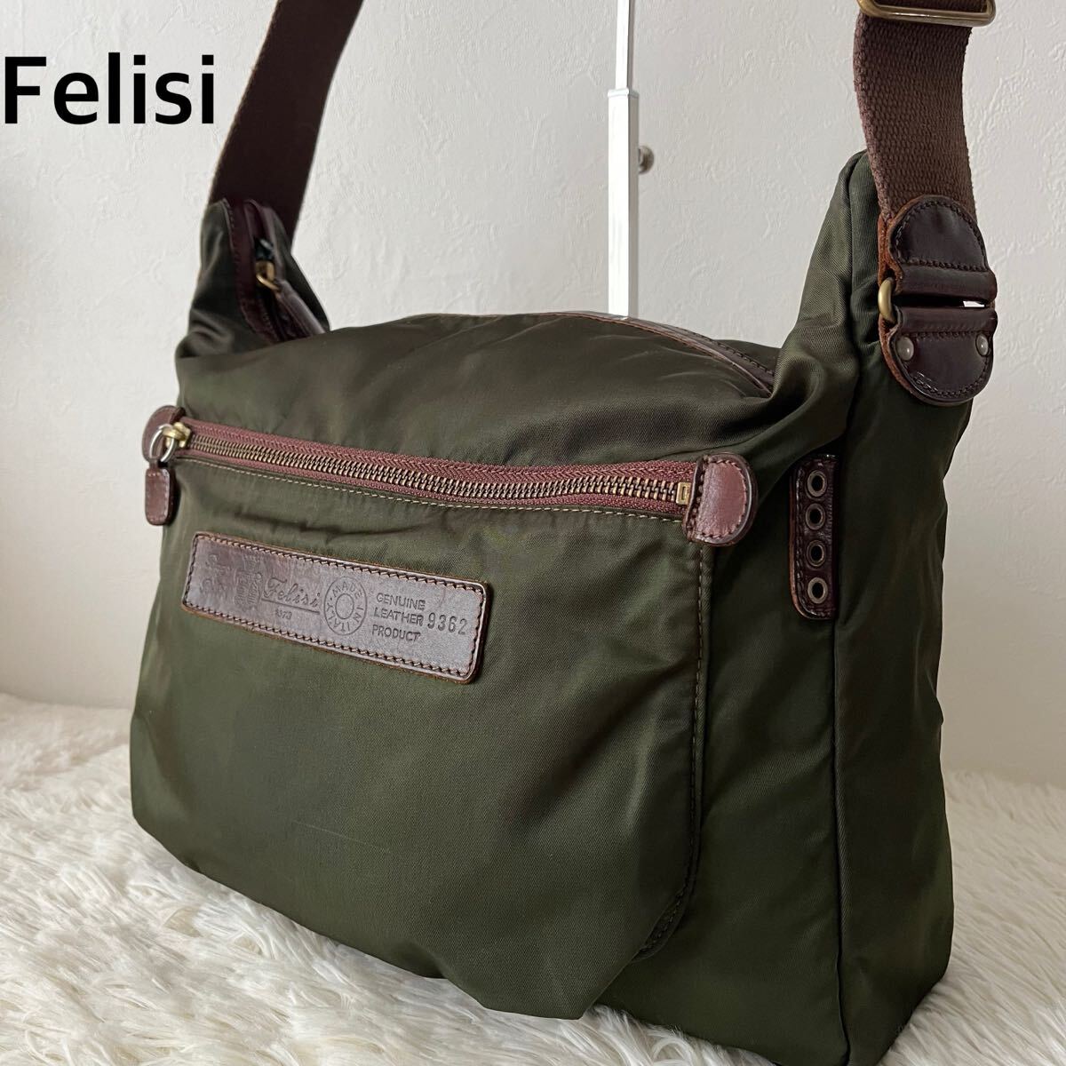 - フェリージ Felisi ショルダーバッグ 6362 カメラバッグ オリーブ 斜め掛け ナイロン レザー イタリア製