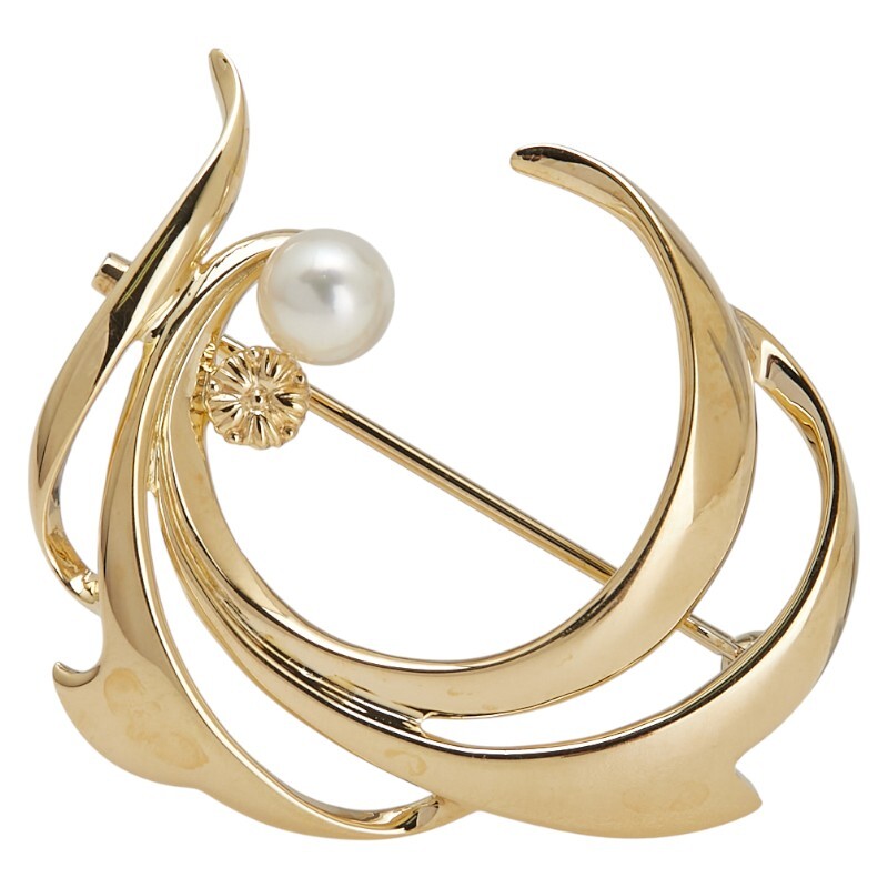 > ミキモト K18YG イエローゴールド アコヤ真珠 アコヤパール5.3mm ブローチ レディース MIKIMOTO 中古