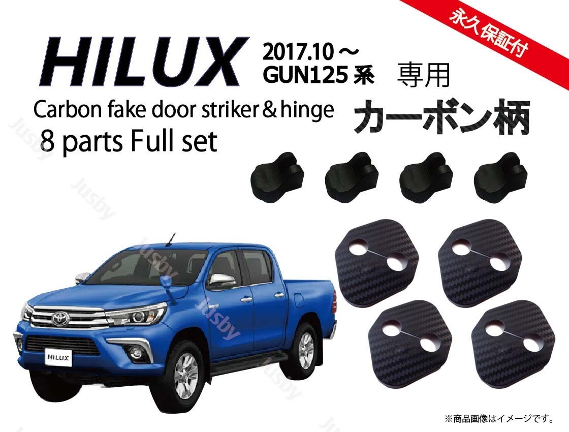 - トヨタ ハイラックス HILUX (GUN125系) カーボン柄ドアストライカーカバー アクセサリー ドレスアップ ドアカバー ドアヒンジ ラバーマット
