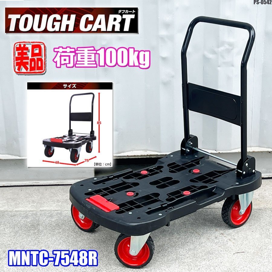 - 美品!! タフカート 台車 オフロード用 荷重100kg ゴム車輪 PP樹脂製 運搬 ブラック×レッド MNTC-7548R モノタロウ ◇PS-0542