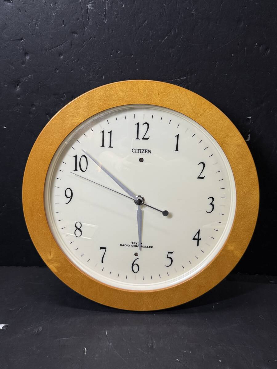 - ★コレクター必見 シンプルデザイン CITIZEN シチズン 掛け時計 動作品 電波時計 木製枠 オブジェ 飾り GT424