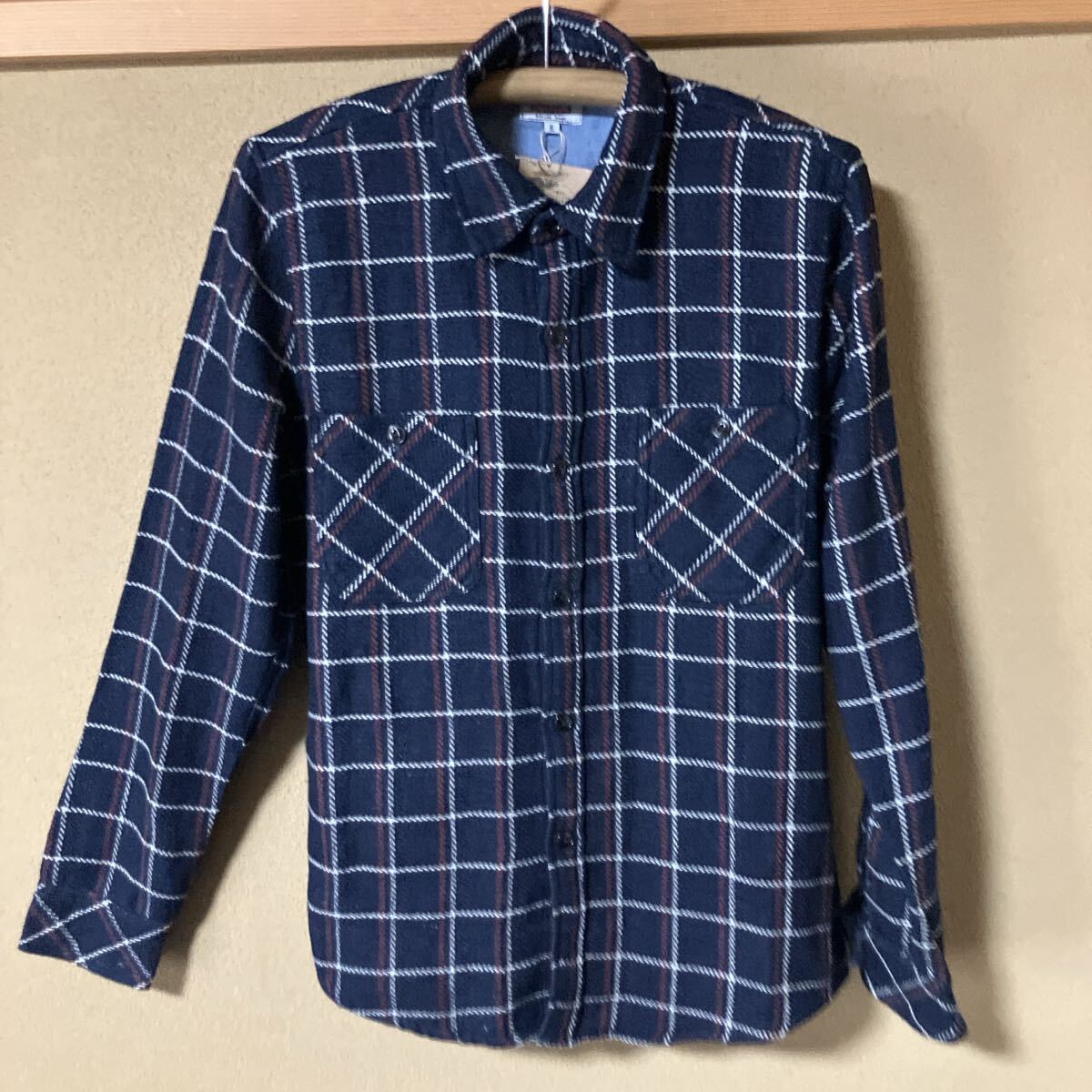 - ガイジンメイド、藍染め手織りビッグチェックシャツ 藍xレッドxホワイト Mサイズ