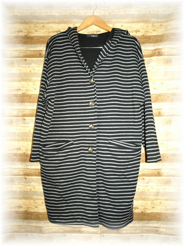 - ニッセン パーカーコート ブラック×グレーボーダー 3L ボタン