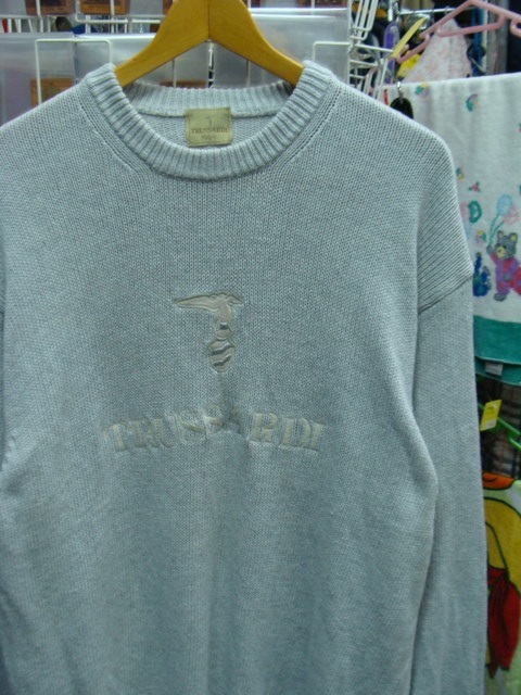 - イタリア製 トラサルディ TRUSSARDI ロゴ刺繍 コットンニットセーター 薄グレー (サイズ不明)
