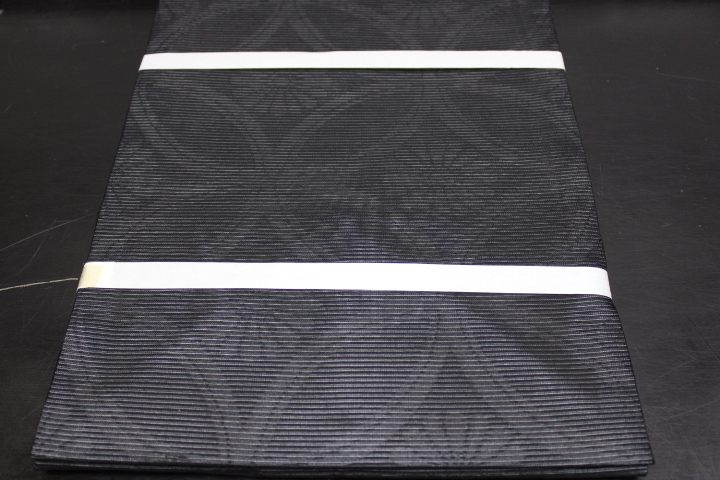 > きもの今昔8989 黒の礼装 喪服名古屋帯 夏用正絹絽の名古屋帯 七宝に菊の花紋章模様 帯封付き未使用品