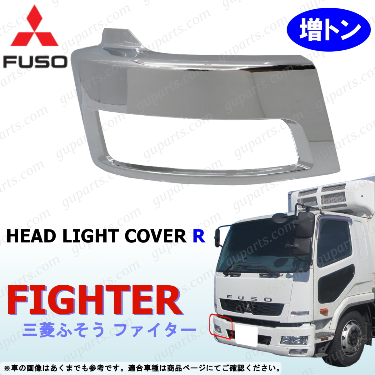 > 三菱 ベストワン ファイター 増トン 用 右 ヘッド ライト カバー クローム メッキ フロント バンパー サイド コーナー MITSUBISHI FUSO