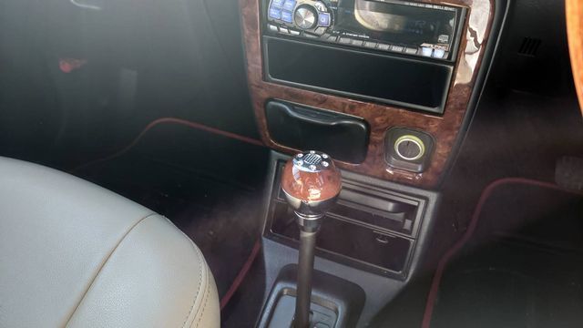 > ダイハツ ミラジーノ 取り付け例 ウッド調 木目 汎用 ATシフトノブ プッシュ式type3 MT車風に変身 木目 シフトレバー 内装 カスタム レトロ