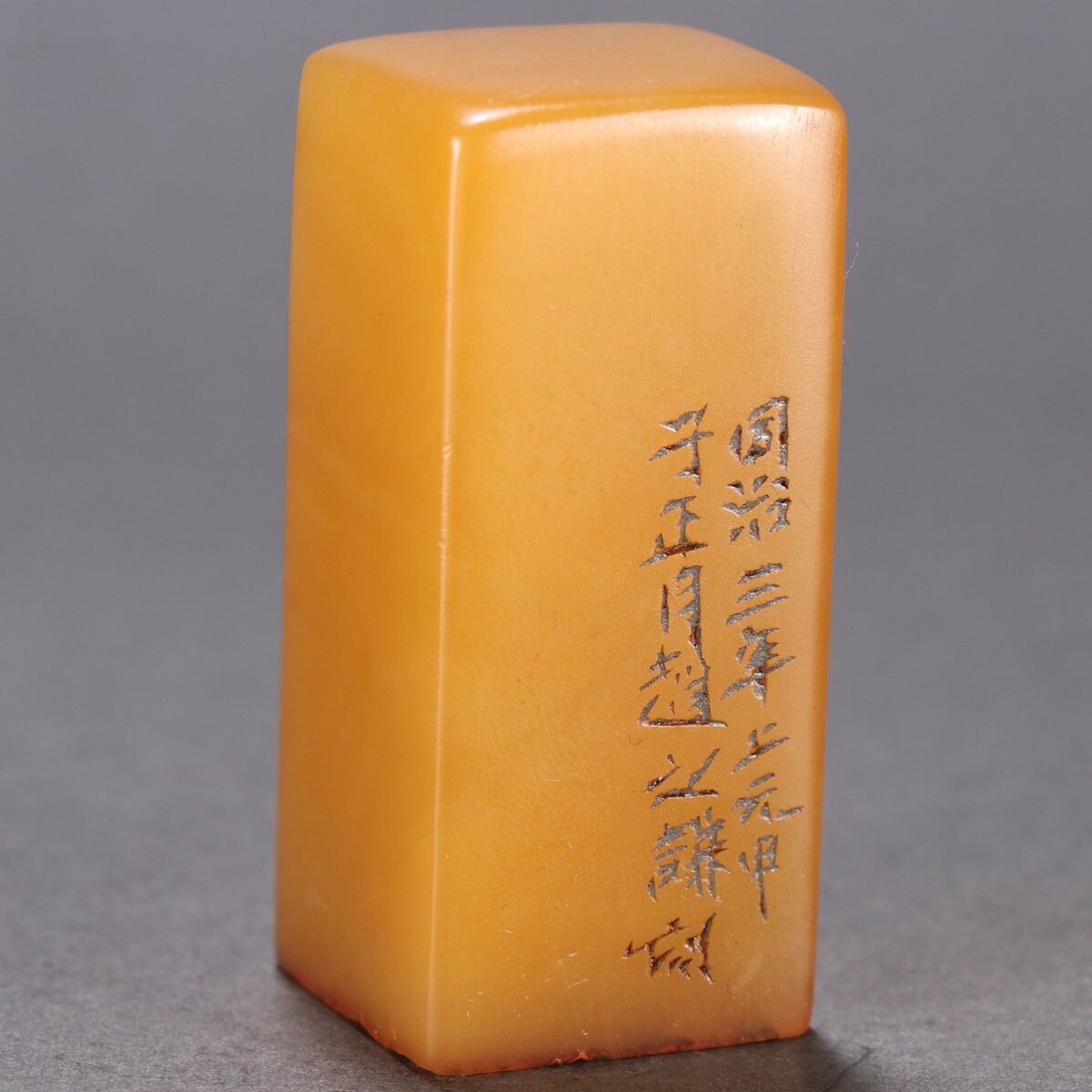 - 清代 趙之謙刻 老寿山石 田黄石彫 四方印章 閑章【仁】極細工 手彫り 中国古賞物 古美術 蔵出