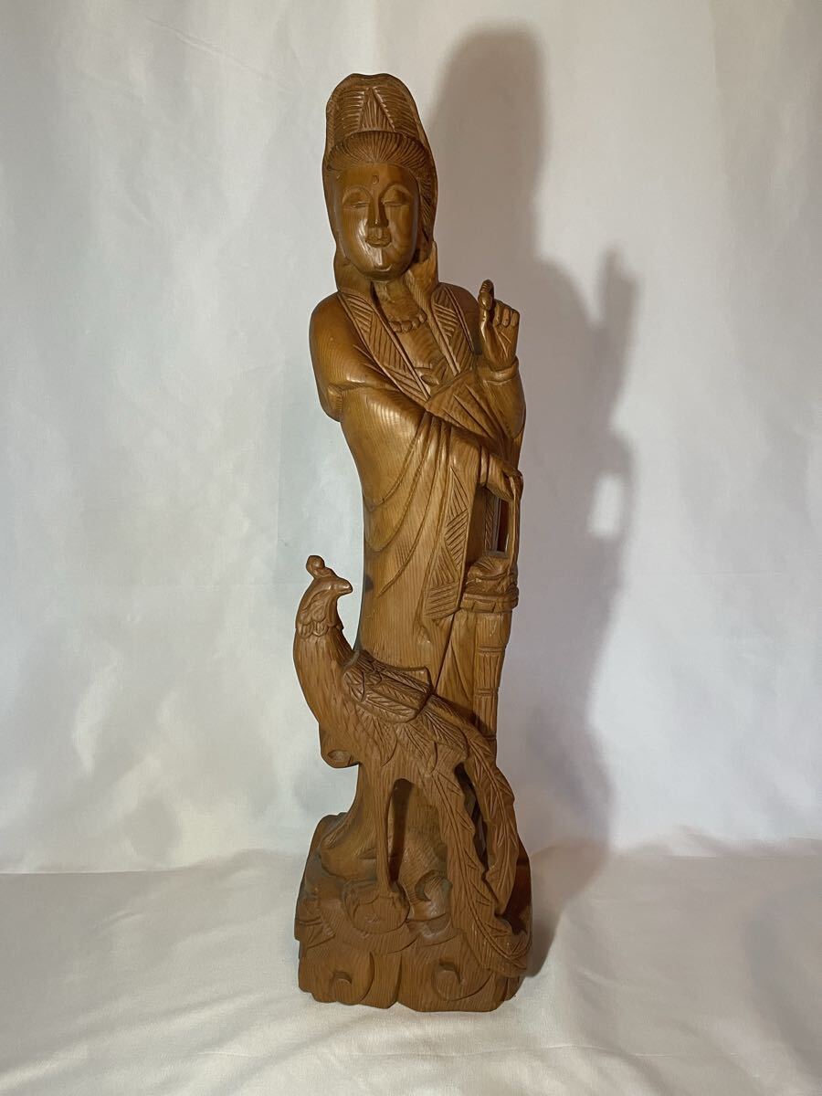 - 特大 木彫り仏教 H59cm 木彫 観音像 鳳凰 菩薩像 無垢木製 一刀彫り 鳳凰 仏具仏像 置物 木製 仏教美術 オブジェ 縁起物