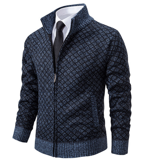 - 新作春秋 ライトグレー カーディガン メンズ ニットジャケット セーター ニット ハイネック チェック 総柄 M~4XL 多色