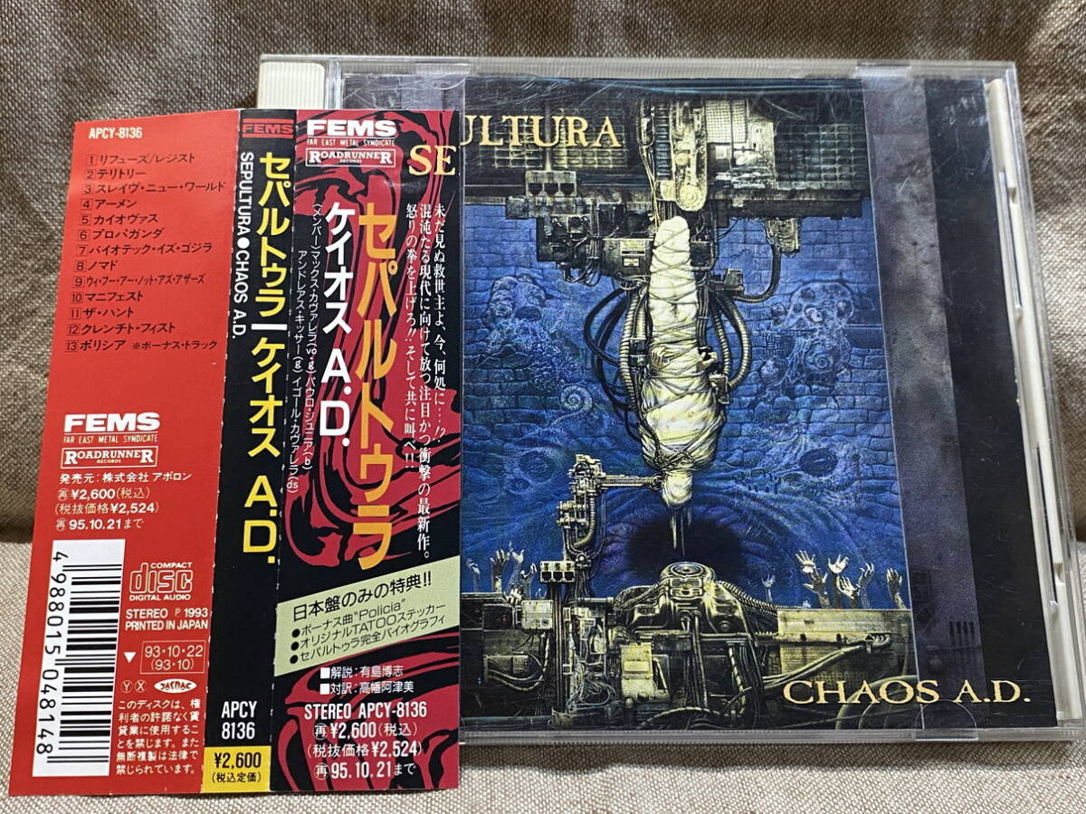 > [スラッシュメタル] SEPULTURA - CHAOS A.D. APCY-8136 国内初版 日本盤 帯付 廃盤 レア盤