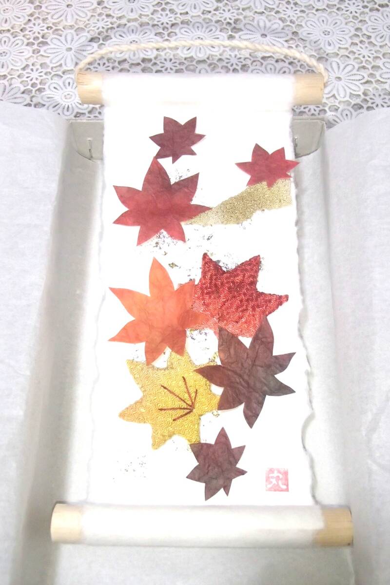 - セール★ことほぎのつづり 紅葉タペストリー 和紙ちりめん細工 本金銀焼箔 秋の壁飾り・玄関 日本製 手作り 京の手仕事