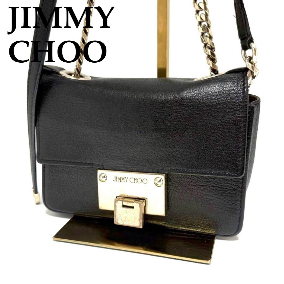 > jimmychoo ジミーチュウ ライリー チェーンショルダーバッグ クロスボディ ゴールド金具 バック カバン 黒 ブラック レディース
