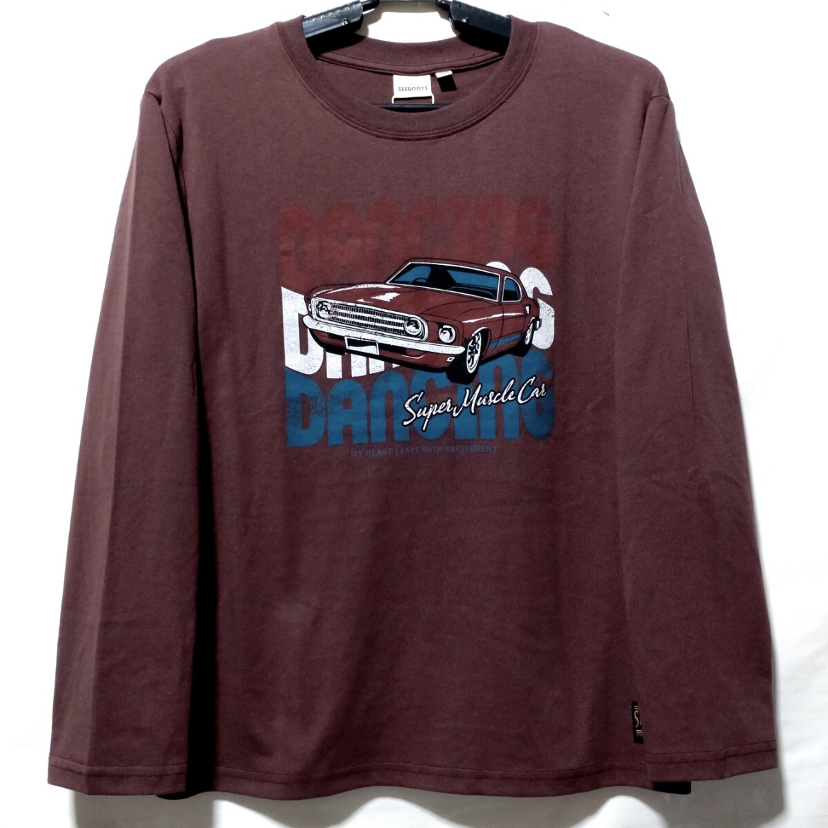 > 特価/未使用【サイズ=150cm】ノーブランド/ヴィンテージ/アメ車/ボーイズ/長袖/Tシャツ/胸囲=70~78cm/brn