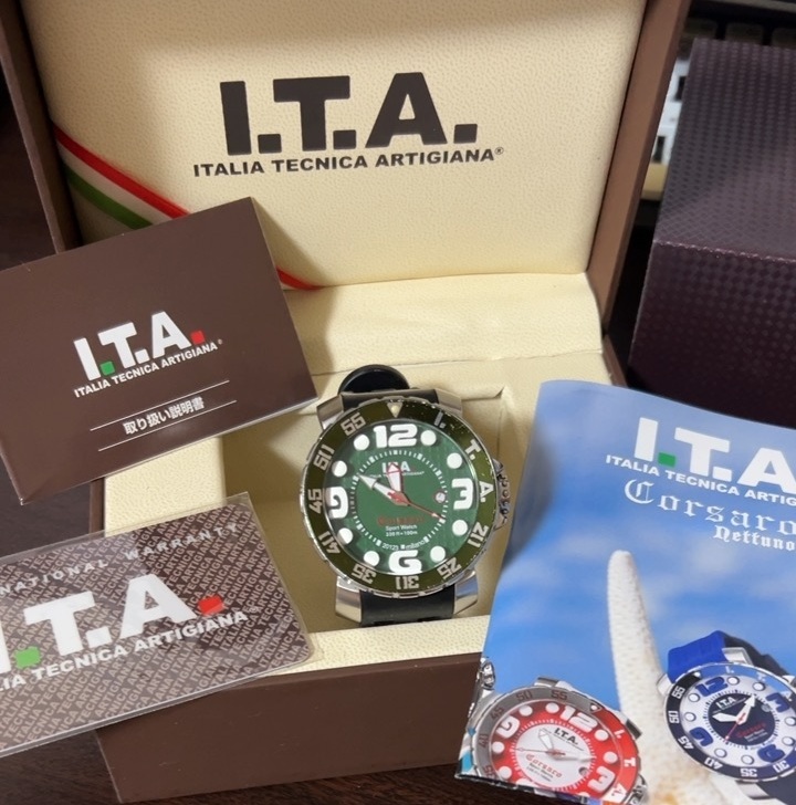 > ITA コルサロ CORSARO グリーン 緑 スポーツウォッチ クォーツ ビッグフェイス 腕時計 電池切れ 箱付き