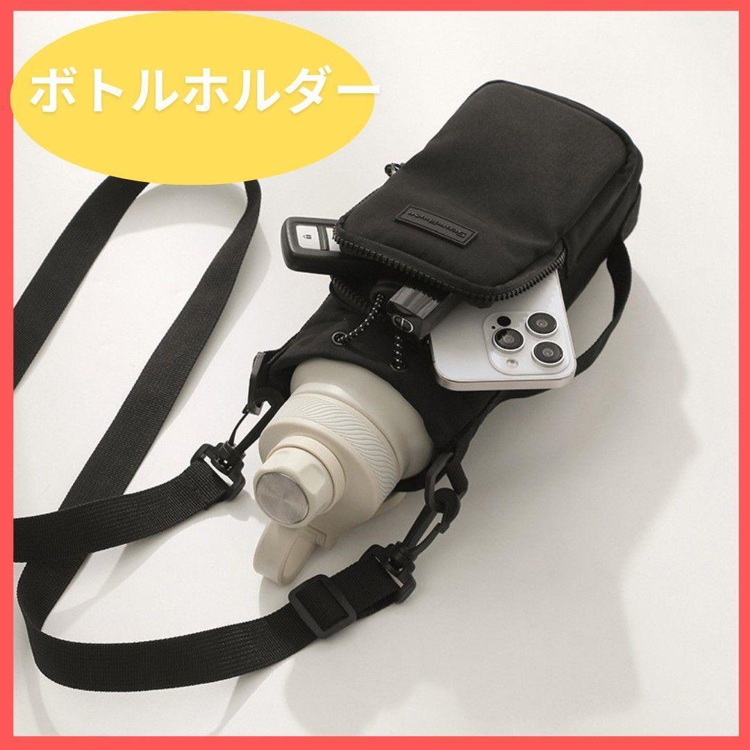 - ペットボトルホルダー ポーチ 水筒カバー ボトルホルダー スマホホルダー 黒