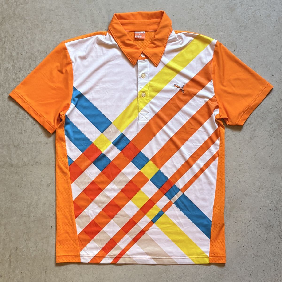 > 【PUMA GOLF】 プーマ ゴルフ ウェア 半袖ポロシャツ メンズ M オレンジ 総柄 ロゴ 刺繍 ワンポイント 吸湿速乾 スポーツ RICKY 正規品