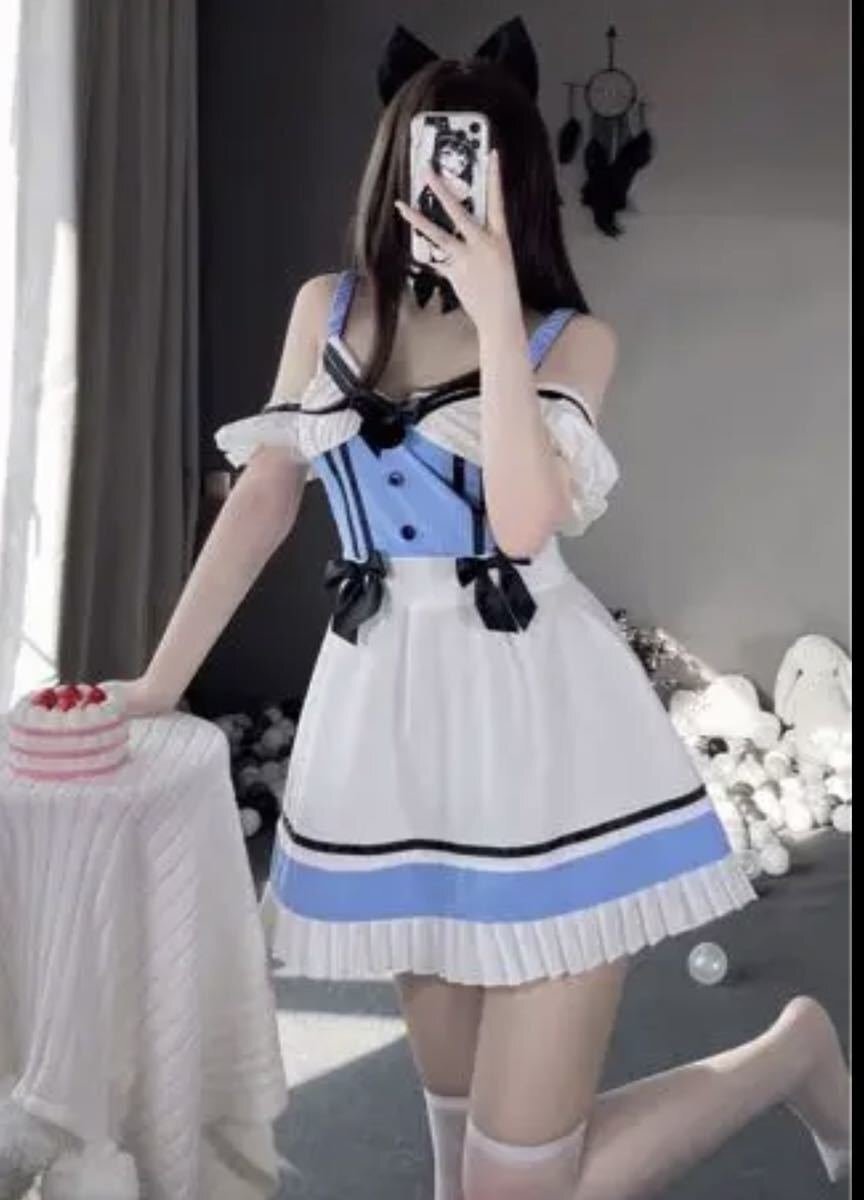 - 超セクシー 誘惑 メイド服【ワンピース4点セット】ベビードール ドレス キャミソール ナイトウェア 可愛いデザイン コスプレ衣装