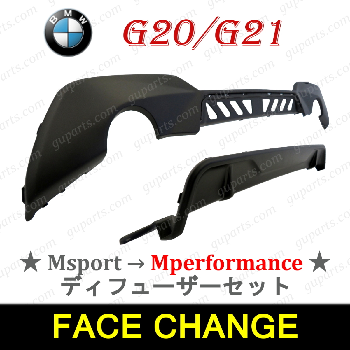 > BMW 3 G20 G21 2019~ 318i 320i 320d 330i 330e Mスポーツ → M パフォーマンス LOOK リア ディフューザー スポイラー エアロ