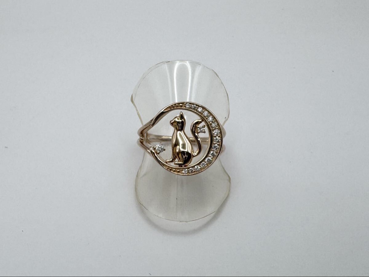 > 【質屋 尾張屋商店 東京】 ☆仕上済☆ K18PG ダイヤ レディースリング アクセサリー 猫 月