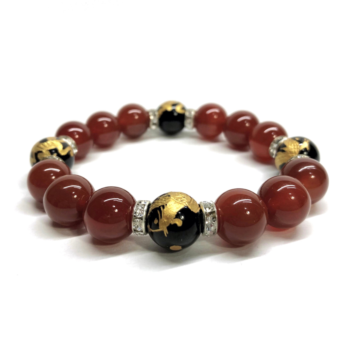 - 四神獣金彫オニキス×赤瑪瑙 12mm パワーストーン ブレスレット天然石 青龍 白虎 玄武 朱雀 運気上昇 開運 金運 お守り 四神獸 四神相応 S