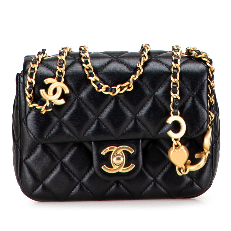 > シャネル ミニマトラッセ ココマーク チェーン ショルダーバッグ ブラック ラムスキン レディース CHANEL 【中古】