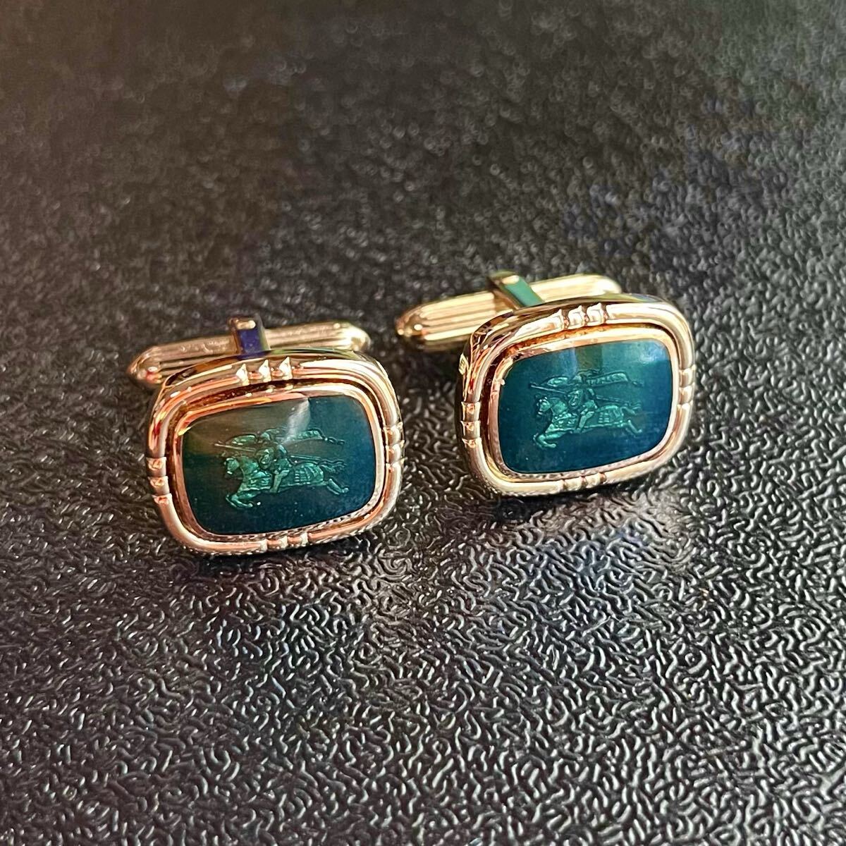 > バーバリー Burberry カフスボタン 四角 スクエア パール 結婚式 礼装 ビジネス カフリンクス スーツ 2個 カフス ゴールド系 グリーン系