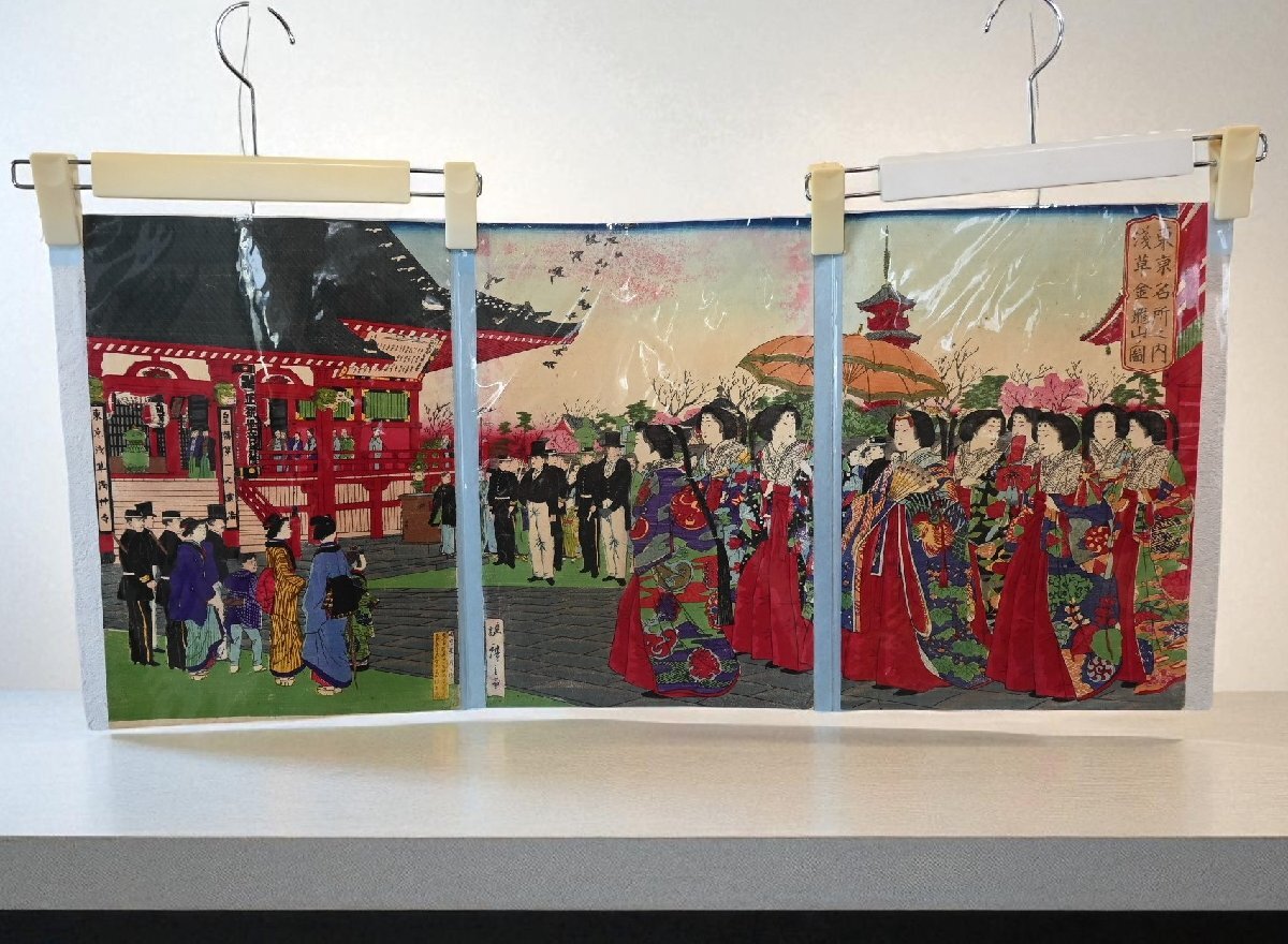 > ○蔦屋吉蔵 定価38万円 浮世絵 明治版画 【絵 師】三代 歌川広重「東京名所 浅草金龍山ノ図」 3枚組 古道具のgplus広島 2509k