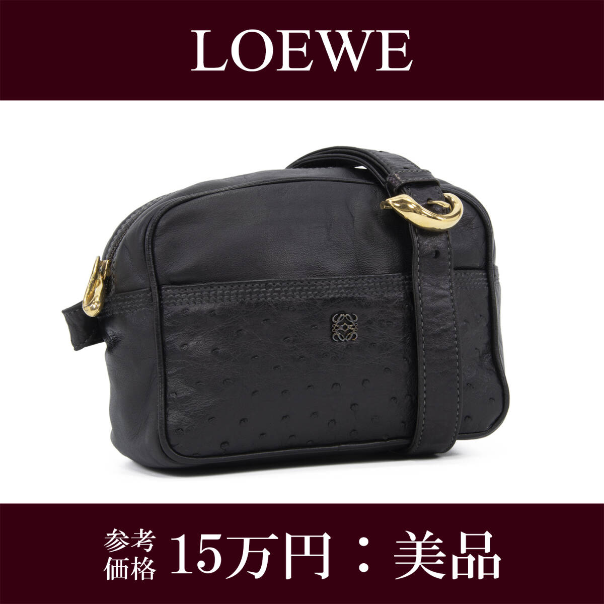 - 本物 送料無料 ロエベ ショルダーバッグ レディース オーストリッチ アナグラム 黒 ブラック 珍しい 斜め掛け 軽い 小さめ 鞄 バック I257