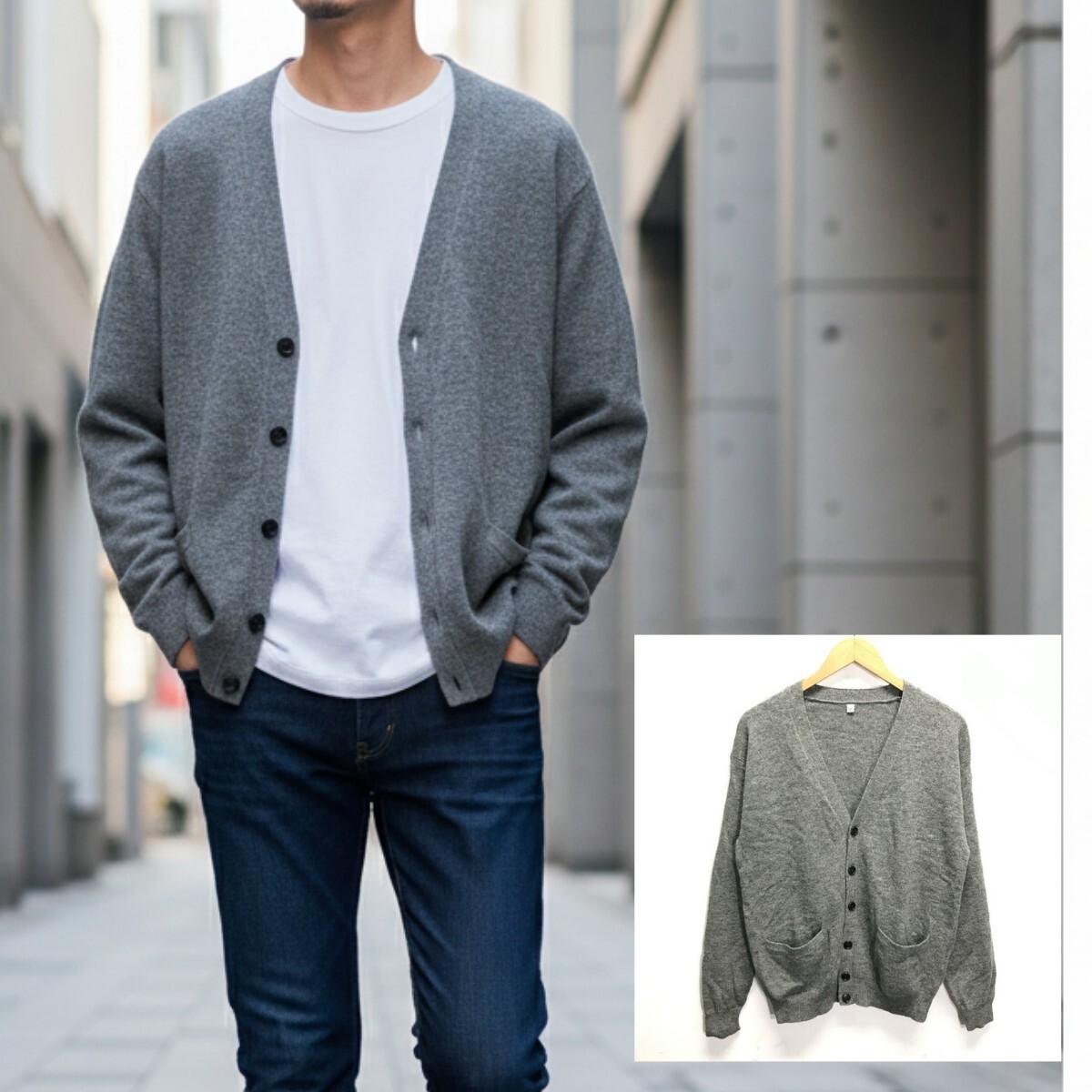 > ユニクロ定番アイテム◎【UNIQLO】Vネックカーディガン トップス ニット セーター ビジネス 大人カジュアル キレイめ グレー M /Y24864ik
