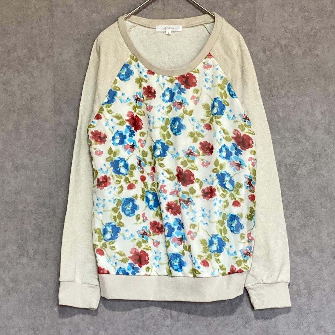 - グローブ(M)トレーナー*フロント花柄プリント*シフォン*トレーナー*長袖